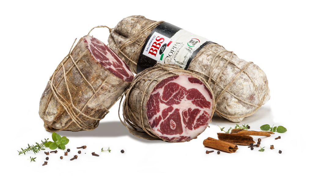 Lavorata seguendo l’antica ricetta della Famiglia Bartoli, la coppa viene massaggiata con sale e una speciale concia composta da un mix di spezie con sentori di garofano e cannella.