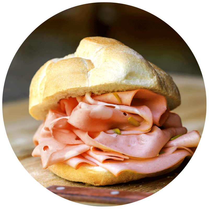 mortadella in budello naturale legata a mano con pistacchio verde di bronte